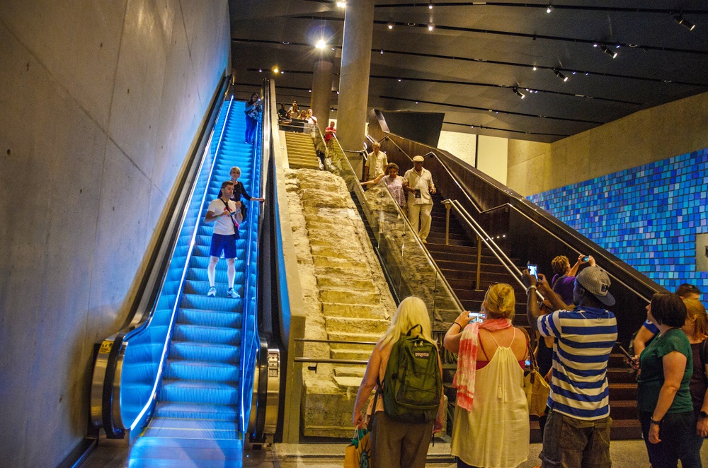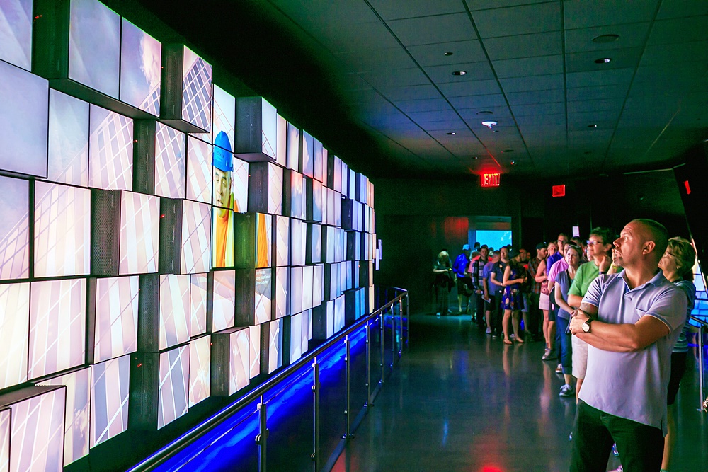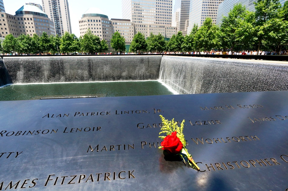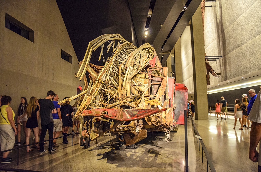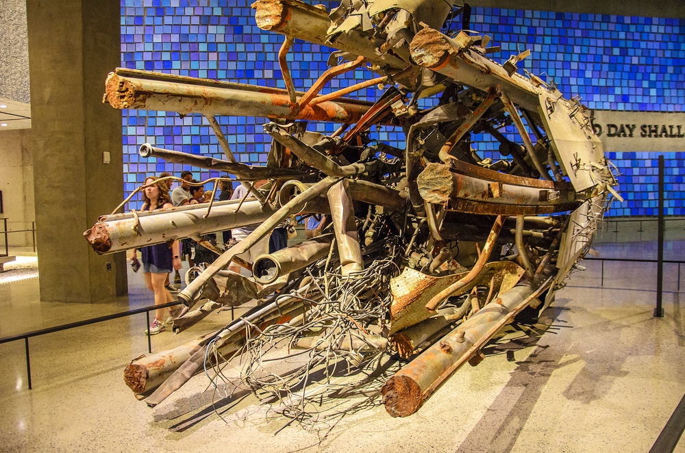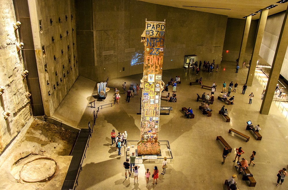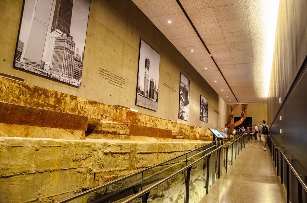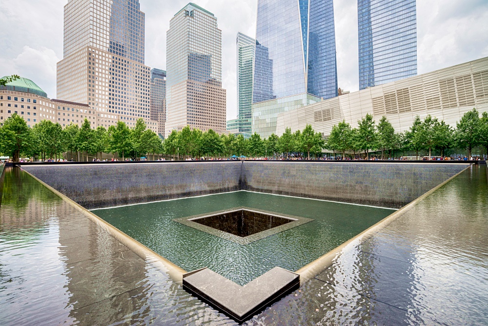 ถัดจากตึกวันเวิลด์เทรดเซ็นเตอร์ไปไม่ไกล จะมี อนุสรณ์สถานและพิพิธภัณฑ์ 9/11 แห่งชาติ (National September 11 Memorial & Museum) ซึ่งตั้งอยู่ในบริเวณที่เคยเป็นตึกแฝดเวิลด์เทรด จะเจอกับ Ground Zero น้ำตกรูปสี่เหลี่ยมจัตุรัส ลึก 30 ฟุต ขอบสระก็จะมีชื่อผู้เสียชีวิตจากเหตุการณ์สลักเอาไว้ มีคนเอาช่อดอกไม้มาวางแสดงความอาลัยมากมาย และยังมีพิพิธภัณฑ์รำลึกอยู่ใต้ดินอีกด้วย ด้านในจะเล่าถึงเรื่องราวเหตุการณ์ที่เกิดขึ้น ตั้งแต่แรกจนถึงปัจจุบัน มีการจัดแสดงซากชิ้นส่วนต่างๆ ของตึกที่ยังหลงเหลืออยู่ พอได้มาเห็นของจริงกับตา ก็ขนลุกและใจหายอย่างบอกไม่ถูกเลยค่ะ…