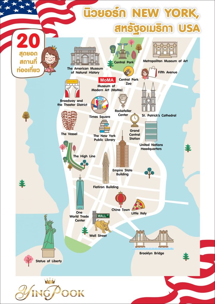 แผนที่ 20 สุดยอดสถานที่ท่องเที่ยวในนิวยอร์ก New York, สหรัฐอเมริกา USA
