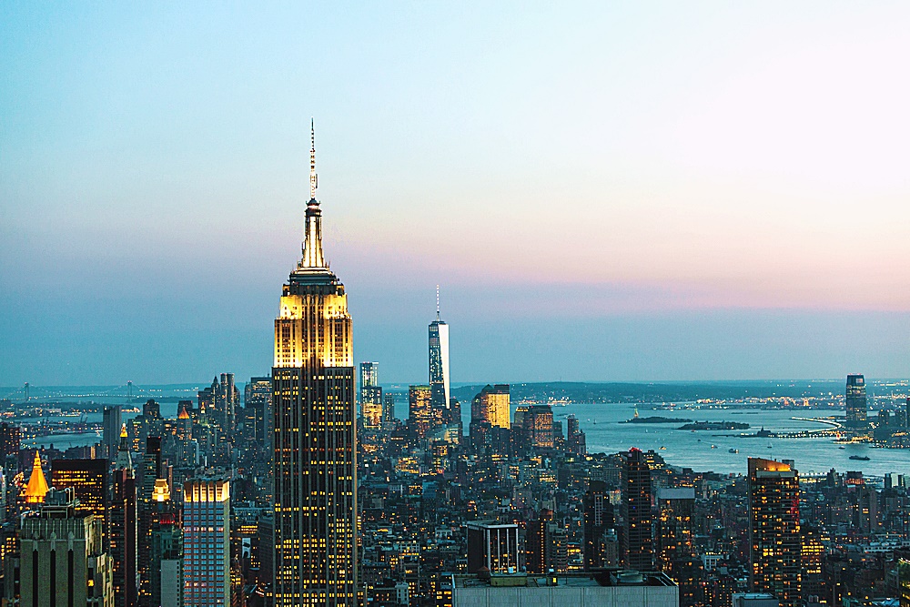 ตึกเอ็มไพร์สเตต ตึกที่เราคุ้นหน้าคุ้นตากันบ่อยๆ ตามภาพยนตร์ชื่อดังในตำนานอย่าง King Kong, Percy Jackson และ Sleepless in Seattle เป็นอาคารแรกของโลกที่มีความสูงถึง 102 ชั้น หรือประมาณ 1,453 ฟุต จัดเป็นตึกที่มีชื่อเสียงที่สุดและเป็นจุดชมวิวเมืองนิวยอร์กชั้นยอดเลยล่ะค่า ตั้งอยู่ที่มิดทาวน์ ใจกลางแมนแฮตตัน โดดเด่นเป็นสง่ามากๆ เคยเป็นตึกที่สูงที่สุดในโลกด้วยน้าา ตัวอาคารถูกสร้างขึ้นจากคอนกรีตเสริมเหล็ก ด้วยศิลปะแบบ Art Deco บนยอดสุดของตึกมีโดมสูงเด่น ปลายแหลมเฟี้ยววเป็นเอกลักษณ์ สร้างเสร็จสมบูรณ์วันที่ 1 พฤษภาคม ค.ศ.1931 โดยบริษัท Starrett Brothers & Eken, Inc. และออกแบบโดยสถาปนิกชาวอเมริกัน ชื่อว่า William Frederick Lamb โดยผู้รับเหมาก่อสร้างเค้ายืนยันความแข็งแรงถึง 5,000 ปีเลยล่ะค่า!!