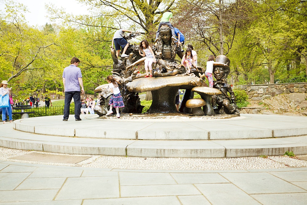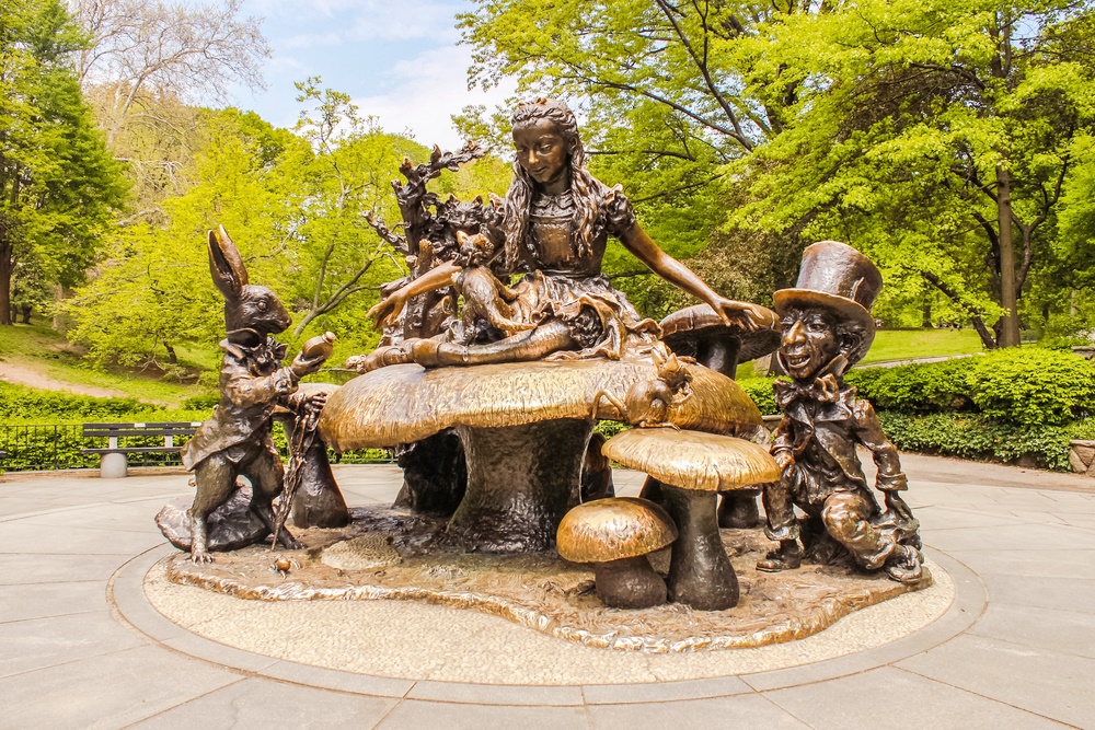 รูปปั้นบรอนซ์ในเรื่อง Alice in Wanderland ในปี ค.ศ. 1959 นาย George Delacorte สร้างรูปปั้นอลิสและผองเพื่อนไว้เป็นอนุสรณ์ระลึกถึงภรรยา เพราะเธอชอบอ่านเรื่องอลิสให้กับลูกๆ ฟัง เขาจึงได้มอบรูปปั้นเหล่านี้ไว้เป็นของขวัญสำหรับเด็กๆ ในเมืองนิวยอร์ก และกลายเป็นสถานที่โปรดของเด็กๆ เลยล่ะค่ะ