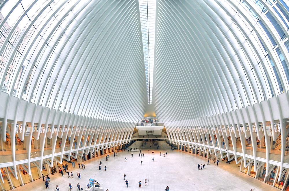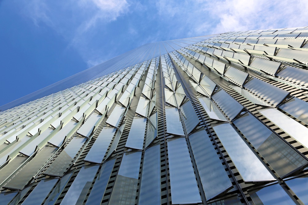 ตึกเวิลด์เทรดที่เรารู้จักกันดีจากเหตุการณ์โศกนาฏกรรมก่อการร้ายเมื่อวันที่ 11 กันยายน 2001 (9/11) เครื่องบินโดยสารสองลำถูกบุกยึดและบังคับให้พุ่งชนตึกแฝดเวิลด์เทรดที่เคยตั้งผงาดพังถล่มลงมา จึงมีการสร้าง ตึกวันเวิลด์เทรดเซ็นเตอร์ หรือ Freedom Tower แห่งนี้ขึ้นมาใหม่อีกครั้ง เปิดตัวอย่างเป็นทางการเมื่อวันที่ 3 พฤศจิกายน ค.ศ. 2014 ขอบอกว่ากลับมาใหม่ต้องยิ่งใหญ่กว่าเดิมค่า! ออกแบบโดย David Childs สถาปนิกชื่อดัง ตัวอาคารด้านนอกทำด้วยกระจกวาววับ เน้นการสะท้อนกับแสงอาทิตย์เป็นประกาย *0* ออกแบบเป็นรูปทรงสามเหลี่ยมหน้าจั่ว มองดูแล้วเหมือนว่าตัวตึกกำลังบิดตัวพุ่งขึ้นหาท้องฟ้าด้านบน ตั้งเด่นเป็นสง่าเหนือตึกสูงเสียดฟ้าอื่นๆ สูงกว่าชาวบ้านชาวช่องเขาด้วยความสูง 1,776 ฟุต มีทั้งหมด 104 ชั้น และได้ชื่อว่าเป็นหนึ่งในตึกที่สูงที่สุดในโลก งบประมาณการก่อสร้างก็สวยๆ เก๋ๆ ราว 3,900 ล้านดอลลาร์สหรัฐหรือประมาณ 117,000 ล้านบาทเองค่า >,<