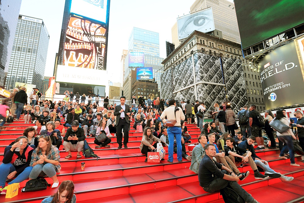 อีกจุดที่คนชอบมาถ่ายรูปกันคือ บันไดสีแดง ของ TKTS ซึ่งเป็นที่ขายตั๋วโชว์ลดราคาต่างๆ